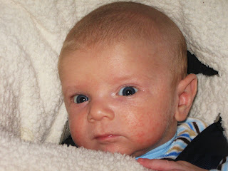 Though I do have a slightly better ability to look at him objectively and say definitively: yes, he's doing just fine. He's growing like a weed and to me doesn't look newborn-y anymore. His cheeks are luscious and full and when he started smiling last week we discovered a dimple on his left cheek. No one else has dimples so this is particularly awe-inspiring for me as his mother.